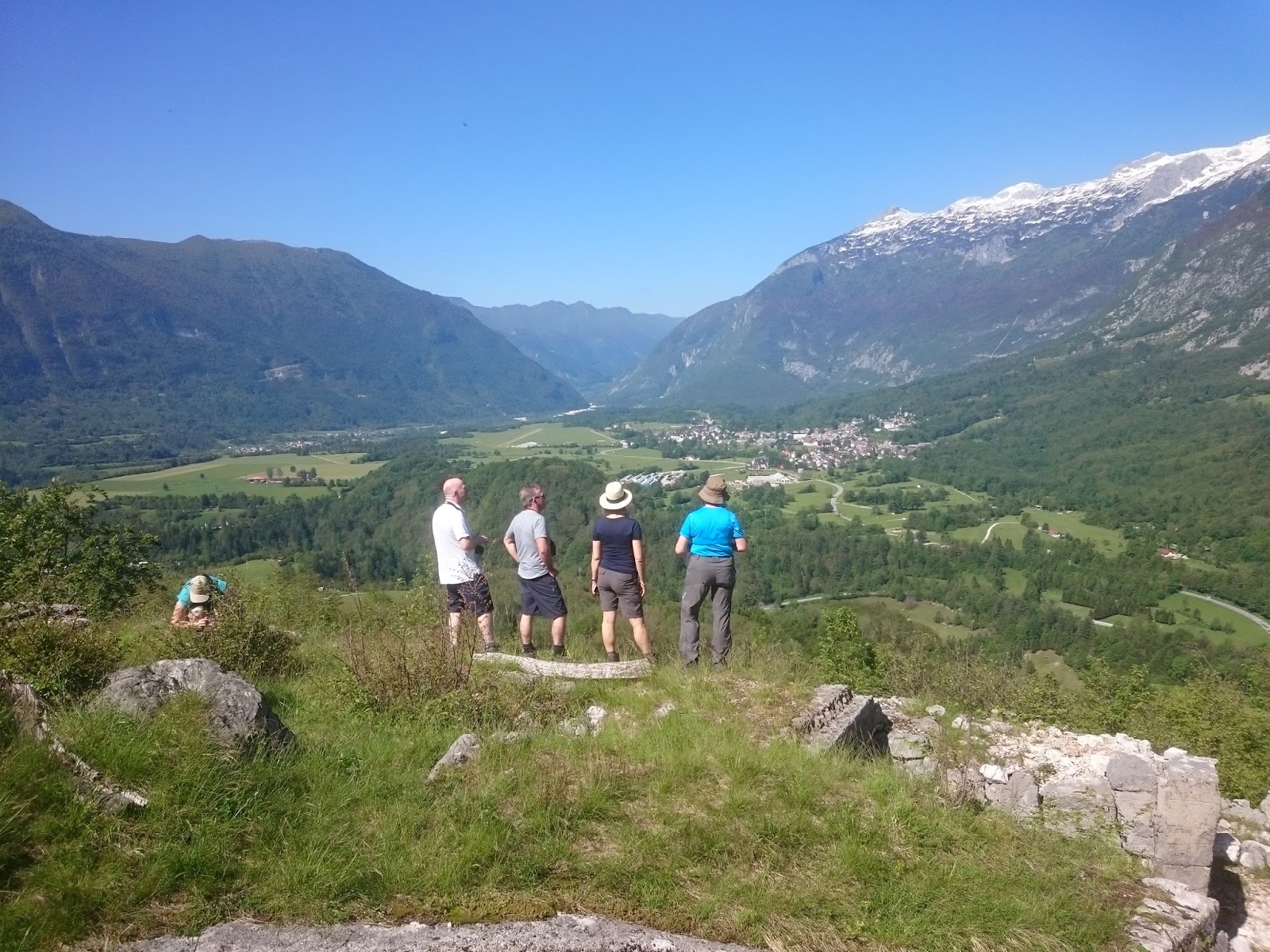 This walk then traverses north along the slopes of Rombon towards Bovec where we aim to arrive no later than around 5pm. The views all around the Bovec basin are very pretty. Total distance walked is around 10 km. Read the report about this day here.