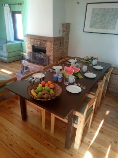 The chalet is built on 3 levels. The ground floor has a reception area and washroom with sink toilet & shower. The first floor is open plan and has a spacious lounge area with wood fire, a TV/DVD Player where you can watch a selection of videos, a balcony where you can enjoy a drink in the sun whilst taking in the surrounding views; and a comprehensive kitchen/dining area where up to eight persons can be seated at once.